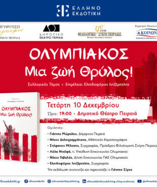 Η Φιλολογική Στέγη Πειραιώς σας προσκαλεί στις 10 Δεκεμβρίου 2025, στο φουαγιέ του Δημοτικού Θεάτρου Πειραιά στην παρουσίαση βιβλίου με τίτλο: “ΟΛΥΜΠΙΑΚΟΣ – Μια ζωή Θρύλος!”. Πρόκειται για συλλογικό έργο υπό την επιμέλεια του Ελπιδοφόρου Ιντζέμπελη από τις εκδόσεις ΕΛΛΗΝΟΕΚΔΟΤΙΚΗ. Στην παρουσίαση θα μιλήσουν οι: ΓΙΑΝΝΗΣ ΜΩΡΑΛΗΣ – ΛΟΛΑ ΝΤΑΪΦΑ – ΣΤΕΦΑΝΟΣ ΜΙΛΕΣΗΣ – ΝΙΚΟΣ […]