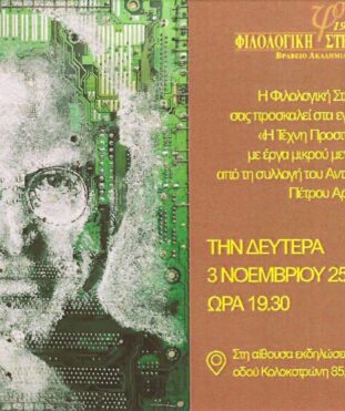 Με αφορμή το ποίημα του Κ. Π. Καβάφη «Ἐκόμισα εἰς τὴν Τέχνη», η Φιλολογική Στέγη Πειραιώς σας προσκαλεί στην ομαδική εικαστική έκθεση με έργα 8 δημιουργών, που αντλούν έμπνευση από τη λυτρωτική καταφυγή στην Τέχνη. Συμμετέχουν οι καλλιτέχνες:Στρατής Αθηναίος, Κατερίνα Βασιλάκη, Σαρωνίς Βατικιώτη Γκάτσου, Λυδία Μαργαρώνη, Κατερίνα Σακελλαρίδη, Γρηγόρης Σερεμετάκης, Αθηνά Τζέη, Βάσω Τσόνογλου Τιμής […]